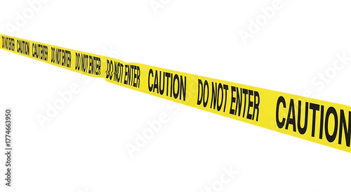 Yellow caution tape with 'DO NOT ENTER' messages blocks passage