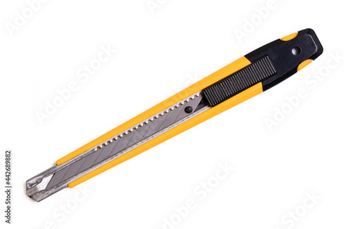 Yellow cutter knife on white background.