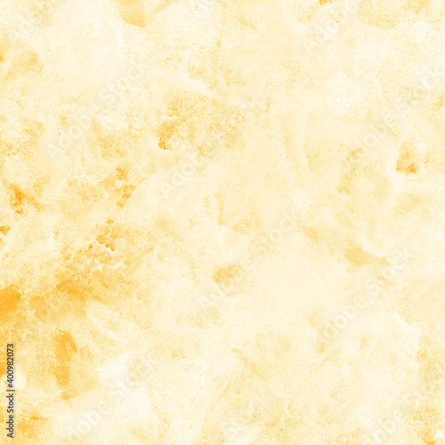 Yellow ink and watercolor texture on white paper background. Paint leaks and decalcomania effects. Hand-painted gouache abstract image. Mess on the canvas.