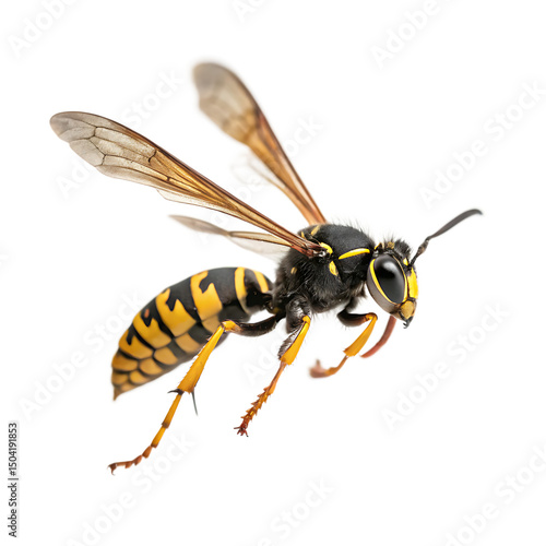 Yellow jacket wasp insect in mid flight pose isolated on a transparent background