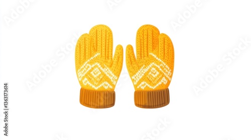 Yellow Knit Gloves, Winter Warmth, Isolated, White Background, Apparel