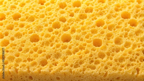 Yellow porous cleaning sponge texture with a shallow depth of field