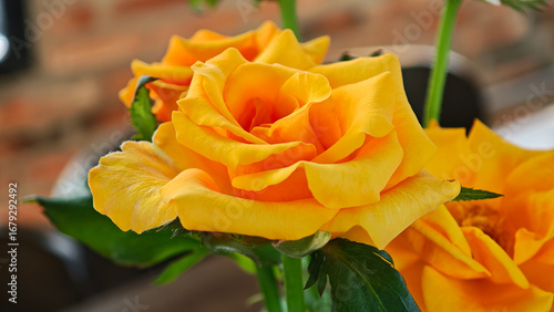 Yellow roses in a vase on the table