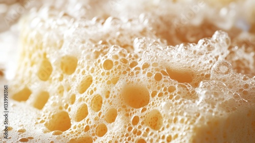 Yellow Sponge Soaked In Sudsy Cleaning Bubbles