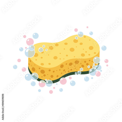 Yellow sponge with bubbles, perfect for cleaning and washing surfaces effectively.