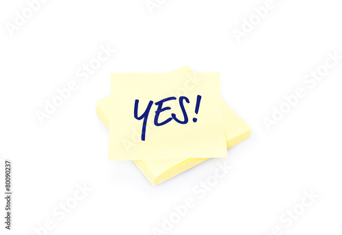 Yellow sticky note on block with text YES