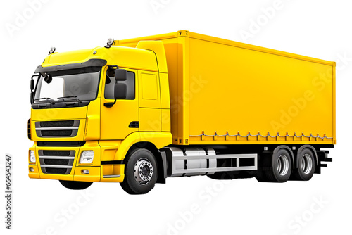 Yellow Truck with container, cargo transportation concept, isolated on transparent background