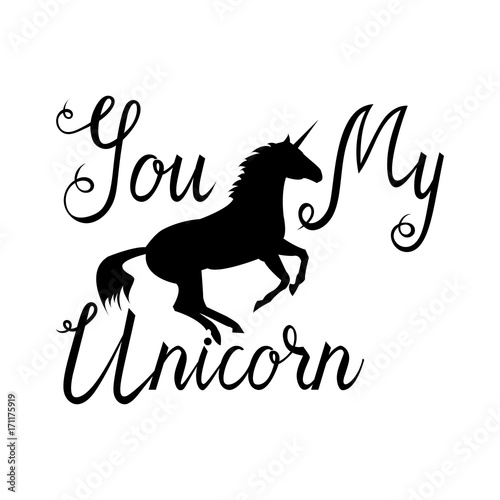 You my unicorn inscription brush. Silhouette of a unicorn with lettring