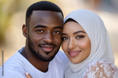 Young African Muslim Couple Posing for Eid Mubarak, Islamic Festival Photo.Fictional Character Created By Generative AI