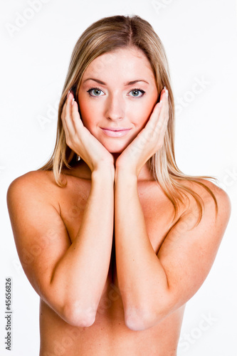 Young and beautiful woman on a white background isolated