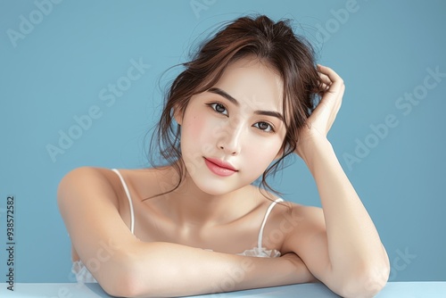 Young Asian Woman with Clean Fresh Skin, Korean Makeup, Spa and Cosmetic Treatment