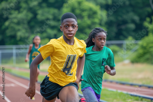 Young Athletes Running During a Daytime Track Event