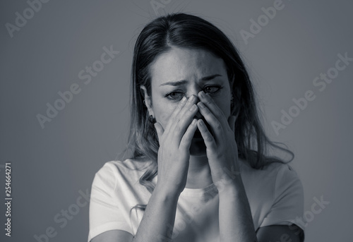 Young attractive woman sad and depressed feeling desperate. Human expressions and emotions