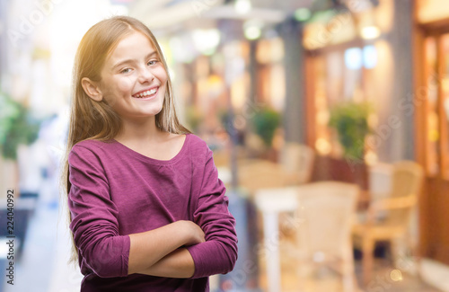 Young beautiful girl over isolated background happy face smiling with crossed arms looking at the camera. Positive person.