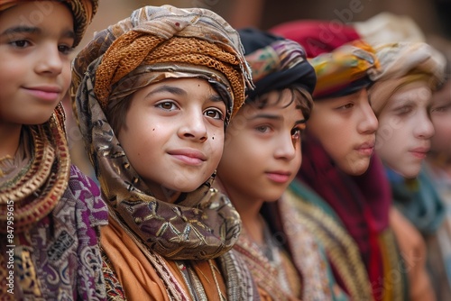 Young Boys Dressed in Traditional Clothing Look Out at the Camera