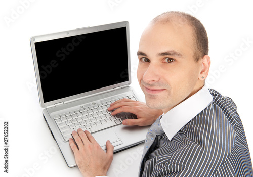 young businessman using laptop