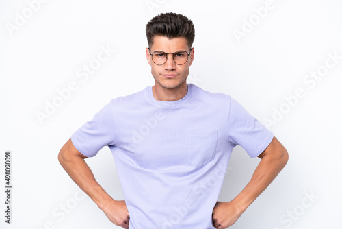 Young caucasian man isolated on white background angry
