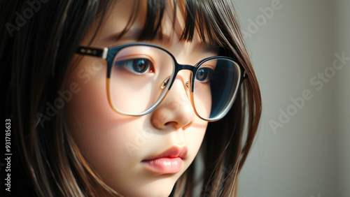 Young girl with glasses looking away