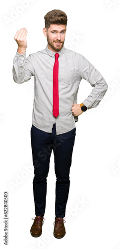 Young handsome business man Doing Italian gesture with hand and fingers confident expression