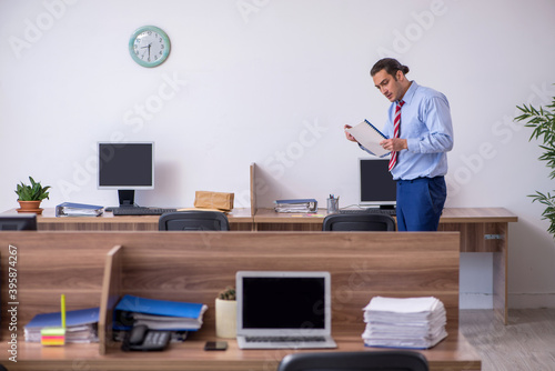 Young male employee in industrial espionage concept