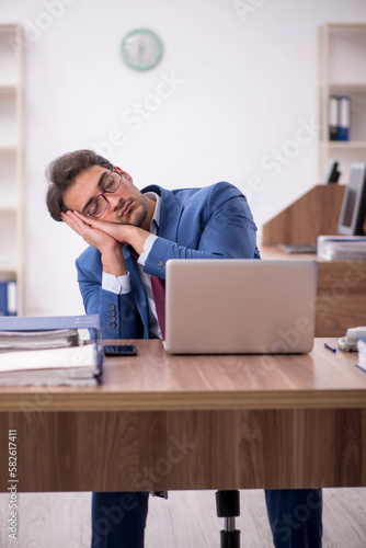 Young male employee unhappy with excessive work in the office