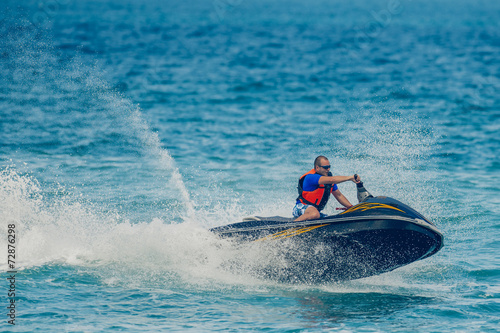 Young Man on Jet Ski, Tropical Ocean, Vacation Concept