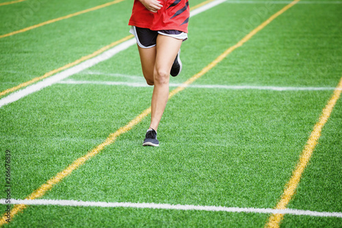 young sport girl running on sport field