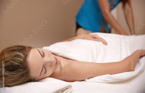 Young woman having massage in spa salon