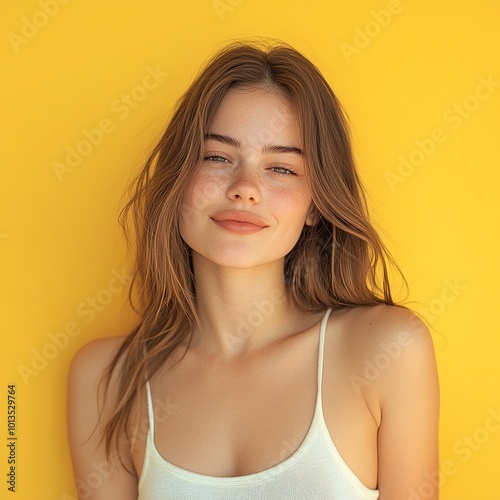 Young Woman Making Okay Symbol with Eye Wink on Yellow Background