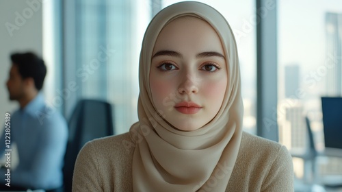 Young Woman Wearing Hijab in Office Setting