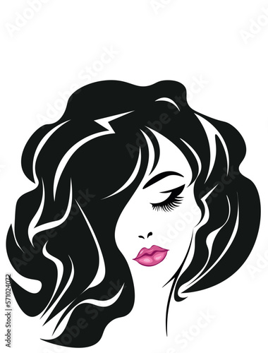 Заголовок Beautiful sexy woman face, curly black hair style, fashion hairdresser, element design, spa salon. Beauty Logo. Vector illustratio