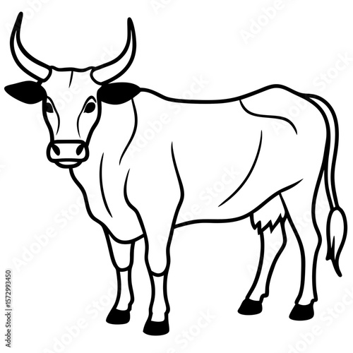 Zebu Animal Line Art Vector