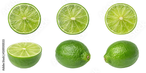 Zesty Lime Delight: A collection of fresh, vibrant limes showcases the fruit's natural beauty, from sliced rounds to whole specimens. This image conveys a sense of healthy eating.