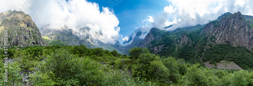 Zeygalan waterfall. The mountains of North Ossetia, summerm Russia