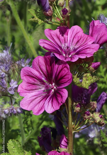 Zwei Blüten einer Wilden Malve (malva sylvestris)
