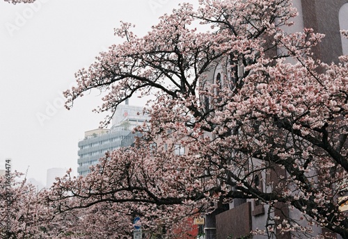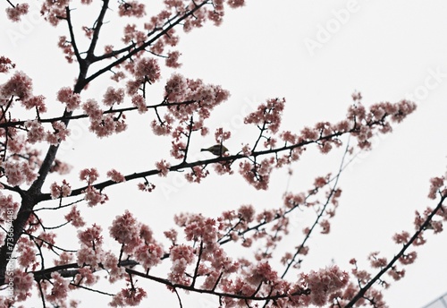 "Serene Blossoms: Cherry Blossoms Under a Veiled Sky"