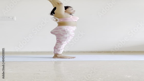 Video Clip Of A Fitness Instructor Doing malasana and chakrasana.