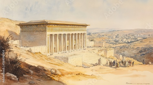 "The Splendor of Solomon: A Watercolor Journey to the Ancient Temple"
